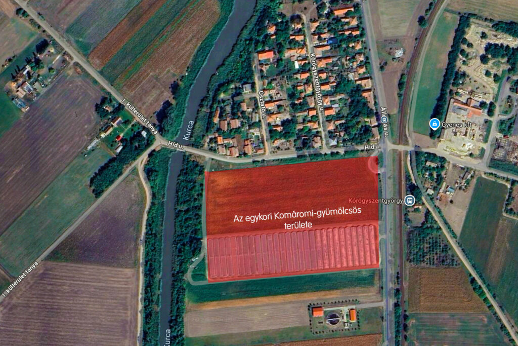 Megtudtam, hogy ez a bizonyos Komáromi gyümölcsös Kórógyszentgyörgyön volt, a kórógyszentgyörgyi vasútállomással szemközt, a mai Híd utca és a Ludas-ér közötti területen, a Híd utcához közelebbi részen. A cikkből kiderül, hogy ezt a gyümölcsöst 1945-ben elkobozták Komáromi Edétől, aki „segéderőt” mozgatott meg a föld elkobzása érdekében. A birtokhoz szép nagy és gondozott gyümölcsös tartozott. Gondozott volt a gyümölcsöskert, mert a tulajdonos Komáromi Ede nagy hozzáértéssel, a tudós szakavatottságával gondozta és gondoztatta szeretett gyümölcsfáit.