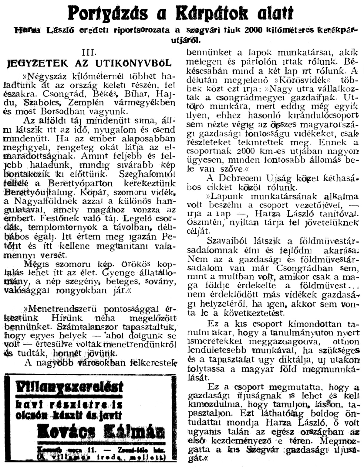 Forrás: Alföldi Ellenzék Újság, 1937. augusztus 3.